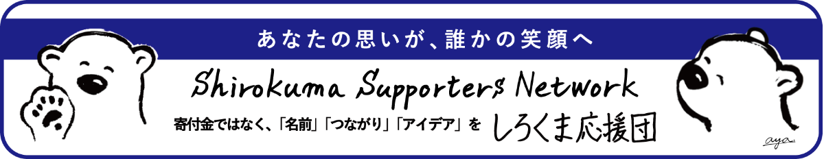 ご購入いただいた皆様には、可能な範囲でお名前(フルネーム・ニックネーム・イニシャル) を販売サイトに掲載させていただき、しろくま応援団の一員としてご紹介させていただきます。応援の気持ちが見えるかたちでつながり、広がっていく仕組みです。