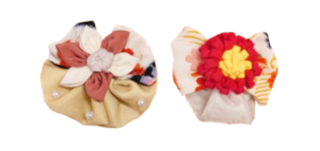 就労継続支援B型事業所の皆さまが、しろくま着物の残布を活かしてひとつひとつ丁寧に髪飾りなどの小物を製作してくださっています。